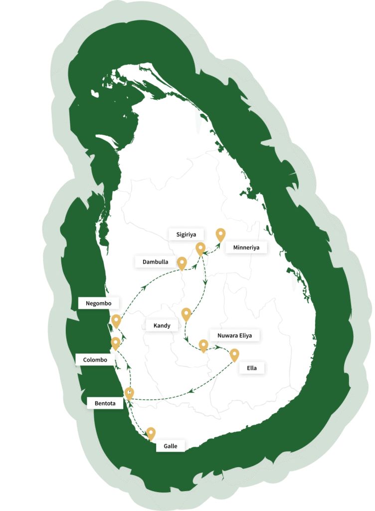 Designed for families, this itinerary combines cultural exploration with wildlife encounters and relaxing beach time. Climb the iconic Sigiriya Rock and enjoy jeep safaris spotting elephants in Minneriya National Park. Journey through fragrant spice gardens to Kandy, where vibrant cultural performances captivate visitors. The trip continues with a scenic train ride to Ella and ends with leisure days by the golden beaches of Bentota, offering water sports and fun educational experiences.